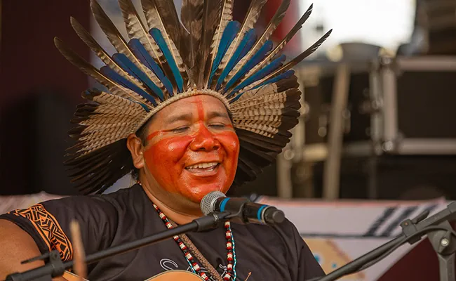 Reconhecemos e honramos a sabedoria dos povos originários. Mantemos parcerias ativas com a Aldeia Guarani Boa Vista (Ubatuba) e a Aldeia Pataxó Hã-Hã-Hãe (Paraty), convidando suas lideranças para conduzir vivências, cerimônias e apresentações em nossos eventos. Criamos um espaço de diálogo intercultural para que suas ricas culturas sejam celebradas e respeitadas.
